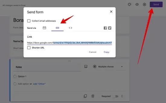 - Cuba sendiri explore fungsi dalam google form tersebut dan apabila anda sudah selesai, boleh tekan butang “send” di bahagian atas kanan.